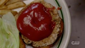 Once again, Sam is mostly just amused. Never mind he worked all night, he still seemed to be happy to see his brother happy. Even that was reminiscent of early season SPN, though I think it made more sense back then. Hearty appetites are part of Dean’s characterization that are sometimes a bit too exaggerated, but it was all in good fun. Dean is so hungry he steals Sam’s food even though it’s very healthy, and later he manages to eat meat (covered in ketchup no less) even after walking through the slaughterhouse. Personally, I was sticking to salad for the rest of the evening.