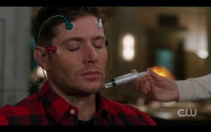 Toni knocks Mary out and then approaches Dean with the syringe. “This will hurt. You understand.”