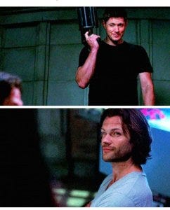 Because of course that’s what Dean would say. Of course Sam knows that about his brother. Just that little bit of dialogue is so telling, says so much about the closeness and the bond between these two brothers. The thing that made me fall in love with this Show and has kept me watching for twelve seasons.