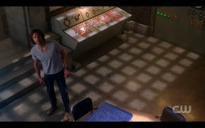 That’s a game I like to play, figuring out which things are not scripted but end up being some of the best moments. Sure enough, a friend of mine just asked Jensen and Jared that at the Rome convention. Totally not scripted. And guess what? That was a real wall! They shot the scene for 60 seconds and actually broke through the real 18 inch wall! Real life superheroes, FTW! Also props to Proppin’ Robin, who had to find Men of Letters appropriate goggles for them to wear.
