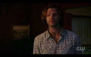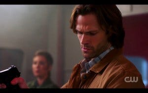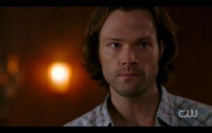 Jared does some incredible acting here, because – as always – Sam has a moment of true fear when he sees Lucifer. That Jared always remembers that would be the case, and keeps that consistency season after season, is a real testament to what a great actor he is and also how much he cares about this character and this show.