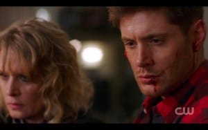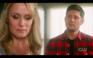 Dean asks his mom one last time, desperately. And it’s like a metaphor for what Dean Winchester has always needed – that mirroring that we all need to feel okay about ourselves, that validation that someone has seen and known the REAL you and loves you anyway. He’s asking for something specific right now, but it feels like he’s also asking for what he’s always needed.