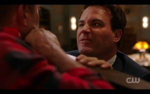 And then we get a truly brutal fight scene that didn’t pull any punches, literally or figuratively. I winced at Dean’s scream of pain as he went down on his injured leg, and again at Ketch’s sadistic enjoyment of taking on Dean Winchester and beating the crap out of him, taunting him as he pummels him.