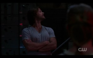 Jared did an amazing job with this scene. He showed us Sam’s hesitation at first, as he corrects himself from “my brother and I” to “you know what? No. I…” Right before our eyes, Sam grows up a little bit more, takes responsibility for himself and his decisions and knows – KNOWS – that he can do this. That he can be a leader. That he IS a leader. Somehow, with voice and tone and inflection and facial expressions, Jared shows us every bit of that transformation. It was so inspiring, I swear I was ready to leap up out of my chair and swear allegiance to whatever Sam Winchester wanted me to do!