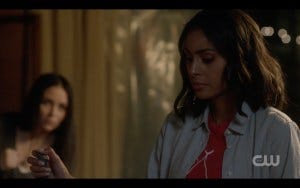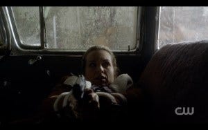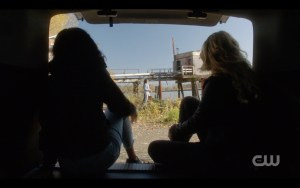 Jody and Donna go in search of Sam and Dean, while Claire stays behind. While Alex and Patience throw rocks in the river (which Katherine Ramdeen says got surprisingly competitive between her and Clark Backo), Claire and Kaia have a chat. The growing affection between the two is beautifully portrayed, with just the right mix of flirtation and a newly established expression of loyalty. Kaia encourages Claire to go save Sam and Dean if that’s what she feels is right, and vows to come with her. It’s clear that Kaia brings out the vulnerability in Claire, and that complexity adds to the characterization.