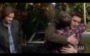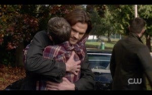 It was a bit of an awkward reunion, with Sam and Dean sort of standing there awkwardly, and I don’t know what that was about. I would have expected someone to be more relieved to see them, just saying. The whole rescue scene seemed a bit rushed and stilted, in contrast to the rest of the episode. Maybe they ran short on time?