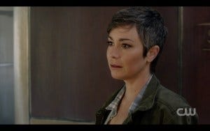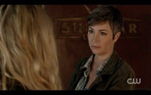 Claire returns to Jody’s, shrugging off Jody’s relieved hug with a very Dean-like quip of “When did we become huggers?” It’s a parallel to Dean’s iconic “no chick flick moments” when he shrugs off Sam’s relief and affection in the pilot episode. Again, I like that Berens made the homage work without repeating the lines. Alex and Claire have a sibling-esque reunion, making it clear that they care about each other but aren’t going to show it, Claire trying to push Alex away when she patches her up. Such a Winchestery moment! We also learn that Alex has a job (as a nursing tech of some sort) and some top rate computer skills, again painting a nice parallel with Sam. Their sibling banter is reminiscent of early season Sam and Dean, something I love very much, and Newton and Ramdeen have some chemistry.