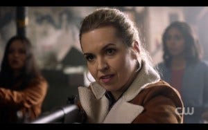 Another subtle call back to Sam and Dean’s “We got work to do” – and sort of the essence of Wayward Sisters. Donna shows Patience how to shoot a gun, and there’s a pivotal moment when they’re standing there at the ready. Patience looks doubtful, understandably overwhelmed, and Donna looks over and tells her calmly, “You got this.”