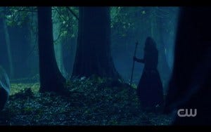 Once he knows Sam is okay, other than being tied to a tree, Dean addresses the hooded figure in typical Dean fashion.