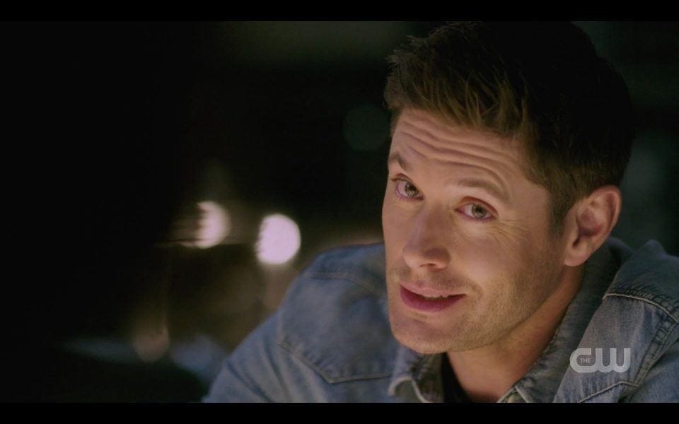 I know some people decided to head canon that Dean was just faking not knowing in order to mess with Sam, but I’ve rewatched it several times and that is not how either of them played it. There’s no comic tell from Ackles at all, and I think there would be.