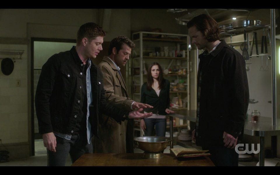 All the kudos to Jensen Ackles, Jared Padalecki, and Misha Collins here; without saying a word, they all pulled off a genuinely funny scene just with their expressions and body language.