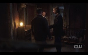 I liked the next short quiet scene with Sam and Dean, because it shows where they are right now as brothers and just how well they know each other. Dean is still lashing out, wanting to blame Castiel because he doesn’t know what else to do with all that rage.