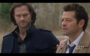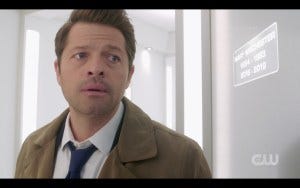 Coincidentally, I’m in the midst of teaching a graduate course in grief and loss to a bunch of counselors in training, so I’m immersed in current research and theory about what sort of things we experience as a loss and the myriad ways in which we grieve them. In a way, that’s making what’s happening with Supernatural and its fandom easier to understand, but in another way, it’s tempting me to grab onto one of the coping strategies for grief that sometimes comes back to kick you in the butt – denial, avoidance, intellectualizing, call it what you will. I’ve been doing a lot of all three, and let me just say up front that it probably influenced my reaction to this episode. As fandom used to say all the time back in the day to acknowledge and validate differing points of view, your mileage may vary.
