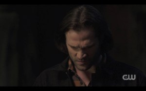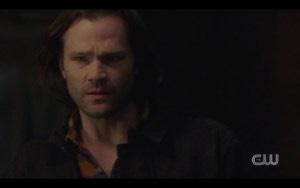 The flashback transitions into Sam’s (which was odd – I had a moment of wait, whose flashback is this?) I think all of fandom gasped in joy to see the return of Sam’s beard of brotherly grief – which Jared partly grew back in a weekend and then makeup filled in a bit!