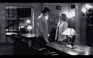 There are always practical constraints to deal with, including how many episodes Samantha Smith was hired for, and that meant constantly finding (lame) reasons for Mary not to be there with her sons and for her sons. I realize they’re grown men who don’t need to live with their mommy, but they were all hunters, and it would have made sense for them to try to protect each other more. Anyway, I didn’t bond with Mary. So when this episode suddenly decided to throw in flashbacks of times that might have made me bond with her, I just felt like it was too little too late. The flashbacks themselves were well done, but I can’t form a bond with a character organically in one episode when I already know you’re taking her away anyway! Sigh.