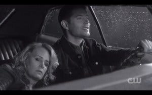 Dean then has his flashback, a small and silent scene of him driving Baby, Mary asleep on his shoulder. Dean looks at her fondly, then turns his eyes back to the road, his expression saying entire pages of dialogue about how satisfied he is to have his mother there and be able to take care of her.