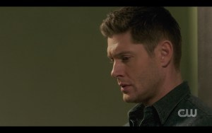 Sam’s admission, accepting some of the blame and quietly challenging Dean’s blaming of Castiel, is so gentle that it gets through Dean’s defenses. Sam knows his brother so well that he knows what will get through to him and what will not. And Dean hears him – and instinctively defends his brother (even from Sam himself)