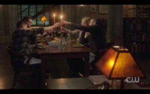 The remembrance of the 300th episode did get to me – that one single night when Sam and Dean had both their mother and their father there, eating dinner like a “normal” family. It’s once again heartbreaking in its simplicity as what Dean has always wanted most.