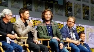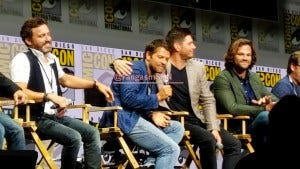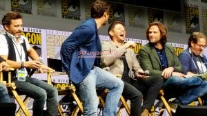 Misha Collins was conspicuously absent for a few minutes. That gave the others plenty of time to mock lament Castiel’s untimely demise.