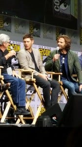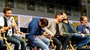 After that unbelievable beginning, Rob and Rich took the stage. It’s an unusual thing to have the Comic Con panel moderators be actors who are actually ON the show, but Supernatural is the very definition of an unusual thing. Anyone who has ever witnessed Richard Speight Jr and Rob Benedict hosting a Supernatural convention knows how ridiculously talented they are and just how quick on their feet. They are not only naturally hilarious, but they KNOW this show inside and out. They know this cast. They’re part of the family. Which all means they are the most fantastic panel moderators anyone could ask for.