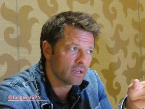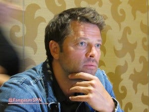 We were incredibly lucky to have some extra time with Misha Collins, and to get rather deep into a conversation about what Supernatural is about and how unique it is that the show has been able to focus so much on brotherhood and to explore masculinity in a different way. Misha was asked to move along to the next table at one point, but then there was no room for him so he said F it and came back and picked up the great conversation, much to our great joy. With bonus Jared tickling Misha’s ear, because that’s how this cast rolls.