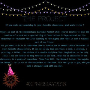 If you’d like to participate in the Supernatural Birthday project, you can send entries to spnbdayproject2018@gmail.com by Sept. 10. Which character inspires you??