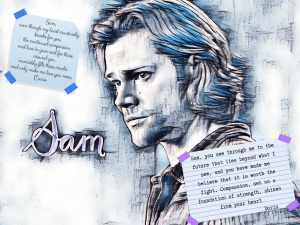 Axy twitter.com/aaaahhhxy : As a fan of many other shows, I have always felt like Supernatural was in a league of its own. For several reasons, but first, because the bond between the actors makes the bond between the characters as real as can be. Underneath the appearance of a simple, pretty-boys-chasing-monsters concept, this is one of the most intelligent and mature shows currently on television. It deals with so many tough subjects, and those subjects are often at the core of our own personal worries and obsessions, how to give our existence a meaning and how to recover from our own shortcomings, and so on…Supernatural doesn’t shy away from being extremely serious while being very silly and light at the same time. The characters are beautifully built, and their evolution is constant and fascinating to look at. On a personal level, Sam helped me getting better when I fell ill last year and his struggles helped me figure out my own. It isn’t much of a stretch to say that he saved me in more ways that I can fathom, and that I wouldn’t be who I am today if it wasn’t for him, had I survived at all. There is a magic in Supernatural, something that can only be explained by how the stars aligned themselves when they cast Jared and Jensen. This show is something unique that never happened before and will never happen again, and I feel like it is our responsibility to protect it and to give back.