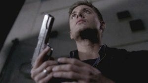 Rewatching this episode now in 2022, we all started giggling as soon as this scene began – because it is also one of the iconic gag reel moments, as Jared and Jensen start bickering just like their characters while Jensen has trouble with the prop gun.