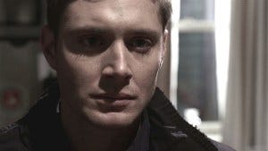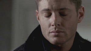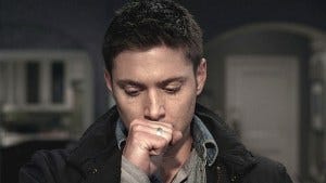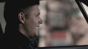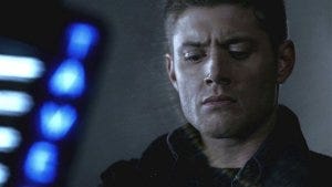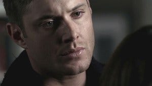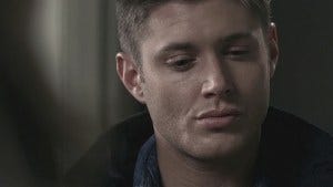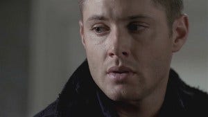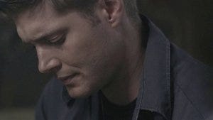 The camera focuses on Dean as a single tear overflows and runs down his cheek.