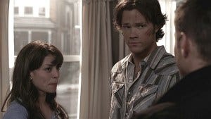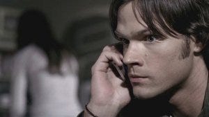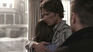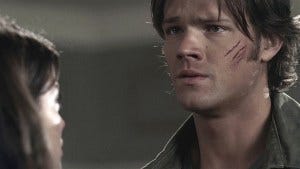 Sam drives to their motel and frantically pounds on the door of Dean’s motel room, saying that she turned and he couldn’t grab her in time.