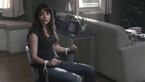 Sam ties her to a chair while she tells him he’s psychotic and laments how stupid she was to let a stranger in (which, valid Madison).