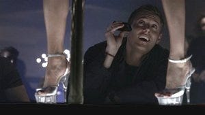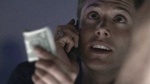 Sam’s cell rings and Dean tells Sam that he found Kurt. We see that he’s at a strip club, happily looking up at a stripper while Kurt sits across the room doing the same.