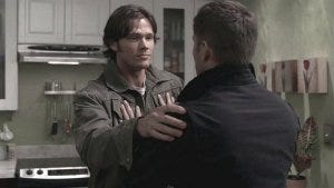 He slaps Dean affectionately on the shoulder, as the brothers often do.