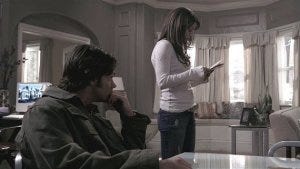 They return to her house, and we see Dean’s gun sitting on the table as they talk.