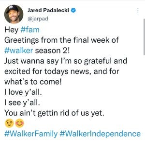 Padalecki took to twitter to let the Walker family know that the enthusiasm and congrats weren’t lost on him – and that he is as excited as we are!