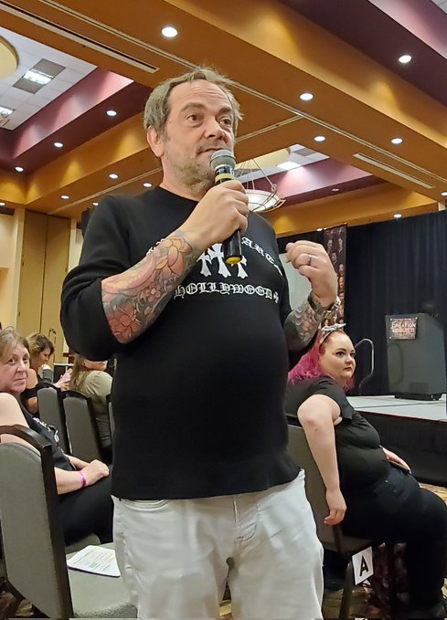 .@Mark_Sheppard on the #SPNFamily. His chapter in Family Don't End With Blood is all about that. In the vendor room at #SPNNC pic.twitter.com/7uLJ7cKThB