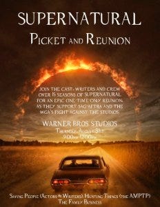 A quick note before I end – tomorrow the SPN Family comes together for a reunion picket to support the SAGAFTRA and WGA strike, with lots of Supernatural actors and writers joining in. It’s been wonderful to watch the fandom support the people who made the show we love, coordinating food and drink and even sunscreen and mist sprayers for the folks who will be out there picketing.