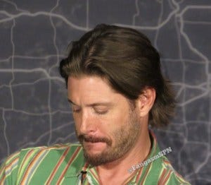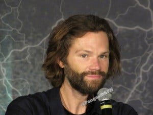 Jared said he just uses the hotel shampoo and puts on a beanie (and then the talented Victoria does his hair for cons – all the props to her and why couldn’t she work on the CW those last few years??)