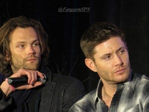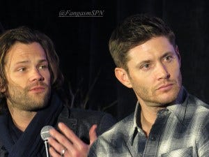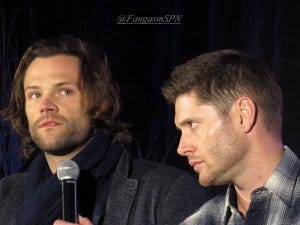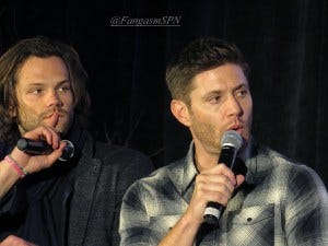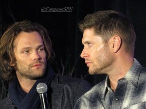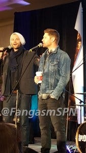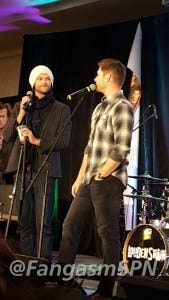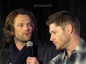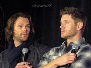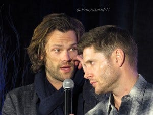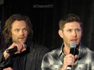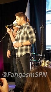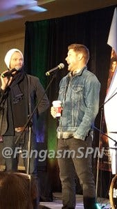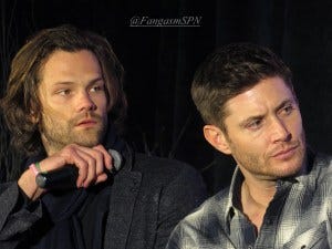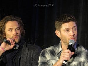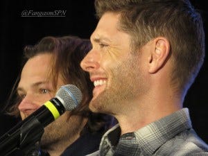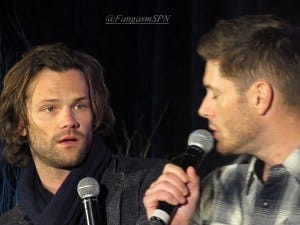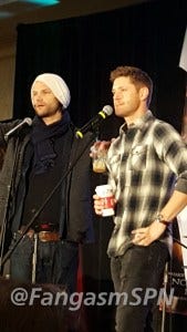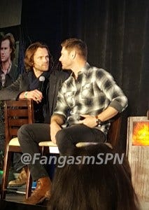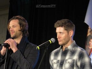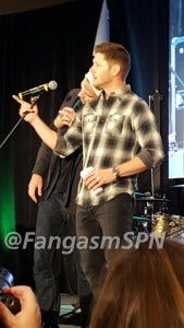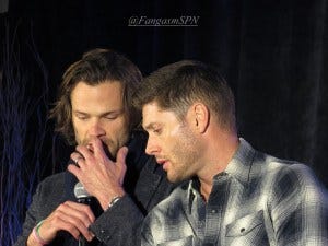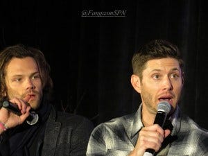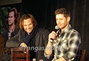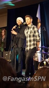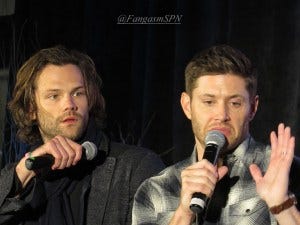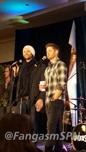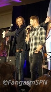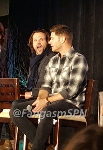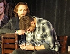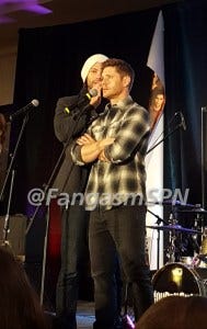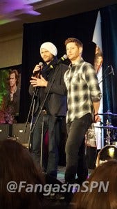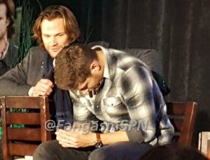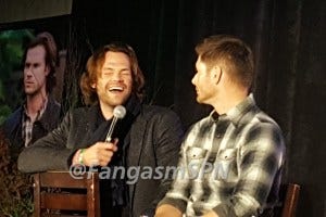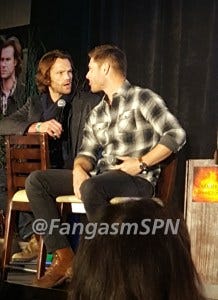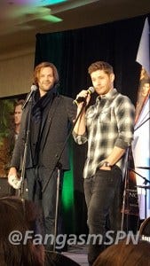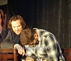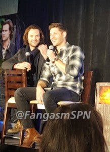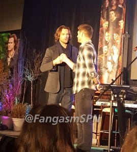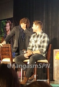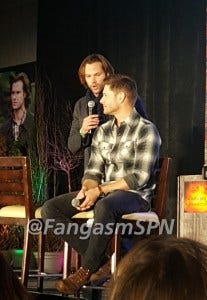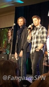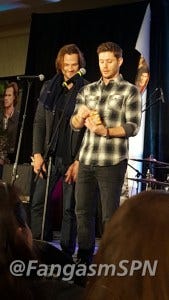 There were some touching fandom moments too. Near the end of the panel, a fan held up a sign that said “We love you Jared and Jensen” that seemed to touch them alot.