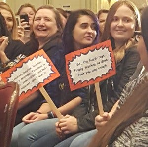 The last question fan was overwhelmed with the excitement of being brought onstage to chat with the boys, hiding her face in her hands.