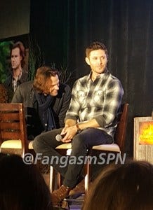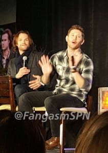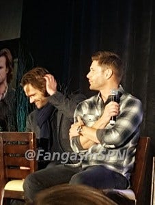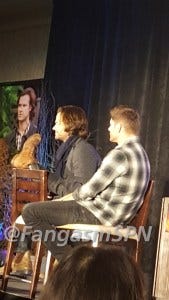 There was a question about father figures, whose death was harder, John or Bobby? Jared said that Bobby and Sam had a chance to tell each other what they meant to each other, but Sam never had that with his dad, so he’d wish for that. Jensen said that for Dean it was Bobby, because that was losing his dad all over again.