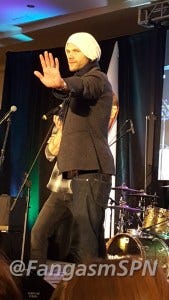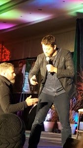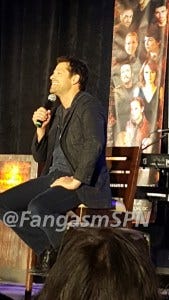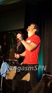 Then it was time for Misha Collins, who demonstrated the private language that he and Rob have – which seemed to consist mostly of them pawing each other’s faces in a most adorable way.