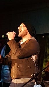 Jason Manns gave a lovely “quoncert”, first singing Wagon Wheel with Richard and Rob and Billy. That went swimmingly, and then they were going to sing ‘Stowaway’. Except Billy started playing ‘Gone’ so Rob started singing that and Jason went along, wondering why they were singing the wrong song. Everything was nonchalant until Rob pulled up the lyrics on his iPad – and they were lyrics for Stowaway in the middle of them singing Gone!