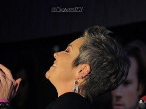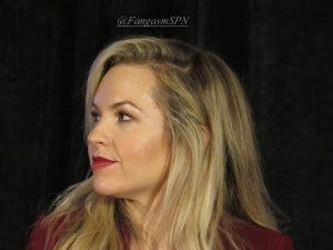 She also had some very nice things to say about Jared and Jensen. When she first got the guest spot on the show, her first scene was the big emotional scene of her husband and son being killed. Jared and Jensen were off throwing a football around and Kim thought oh no, I’m on my own for my first big emotional scene. Then as they got ready to roll, Jared and Jensen came over and Jensen simply asked her, “What do you need?”