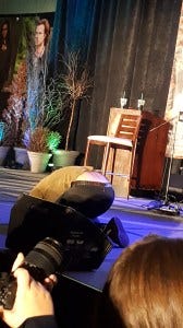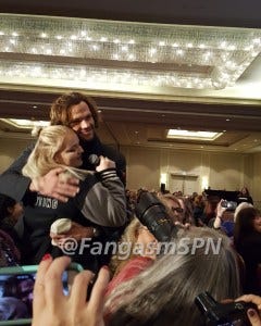 The day ended with photo ops, including one for me with Jared and Jensen “modeling” their Family Don’t End With Blood shirts (stay tuned for that one) and a Mishalecki op with Alana (King Books) in which she got another Jared hug that made her over the moon happy and Misha and I got to grin about it.