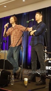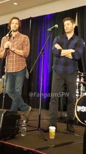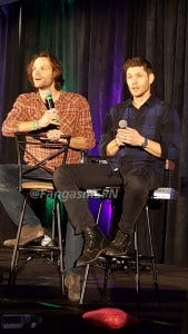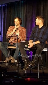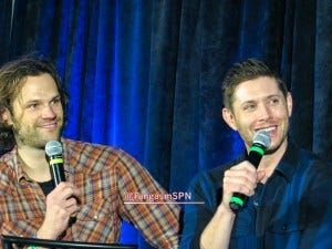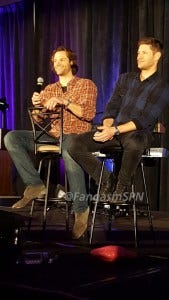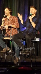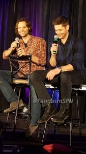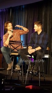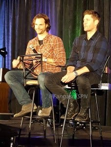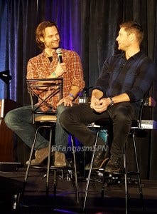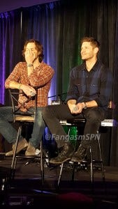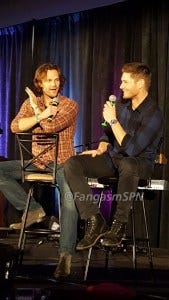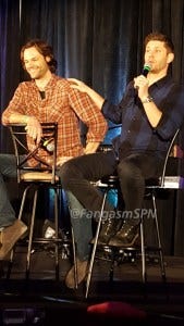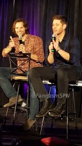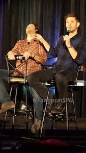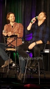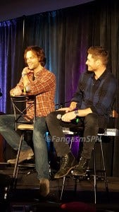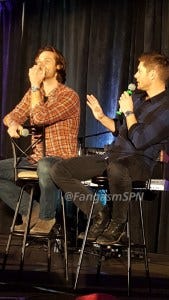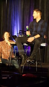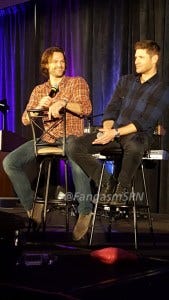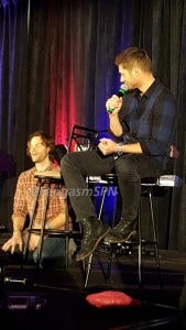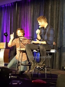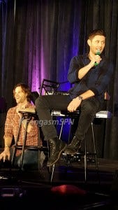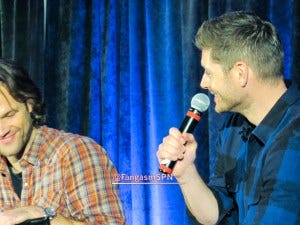 Jared continued that tradition throughout the panel, so we got lots of awesome laughing Jensen. He’s got the kind of laugh that is contagious, especially when he really lets go and throws his head back with abandon. Nobody seems to make him laugh like Jared does, which makes J2 panels a guaranteed mood-lifter for anyone watching.