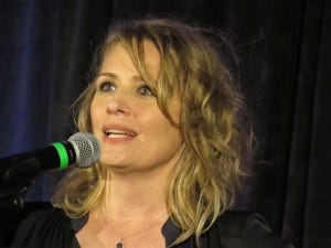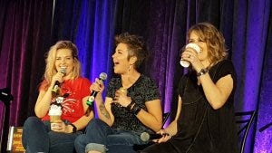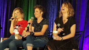 Next up were the stars of Wayward Sisters, Kim Rhodes and Briana Buckmaster. They gave a big shout out to Riley and Betty and melted our hearts by being very sweet to a mini Jody and Donna. That’s why representation is important, isn’t it? Right there in those two little girls who are dressed up as kickass sheriffs.