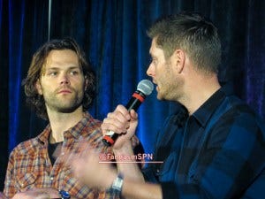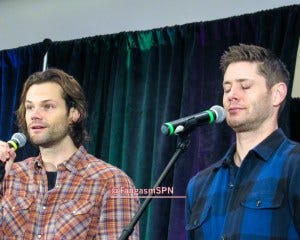 A fan asked if Jesus would ever be on the show (I have no clue why… I guess because God has been?) Anyway, Jensen didn’t miss a beat. He just gestured at Jared and his long hair.