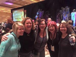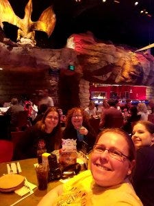 Orlando is a great place to have a convention in the middle of January, especially for those of us who live in the Northeast US and are sick of being frozen half to death. So I was thrilled to fly down a bit early and spend some time with my friends Liz and Kristen and Kim. The con hotel was across the footbridge from Disney Springs, so we trekked over there to explore and shop and have a delicious dinner in a café full of animated dinosaurs. Definitely in Disney!