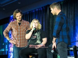 In between the J2 gold panel and main panels, we had a Samantha Smith panel. Sam shared that she once “clocked” Jensen for real, and was upset, but Jensen was just like “eh, it happens.”